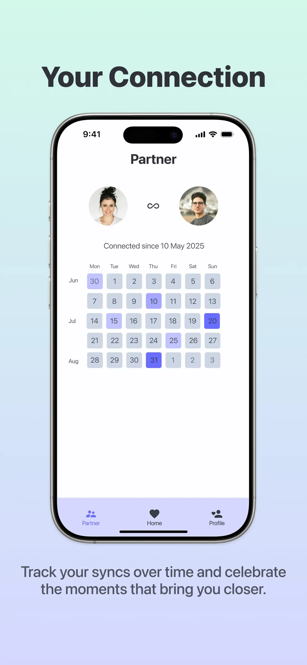 * Track your syncs over time and celebrate the moments that bring you closer