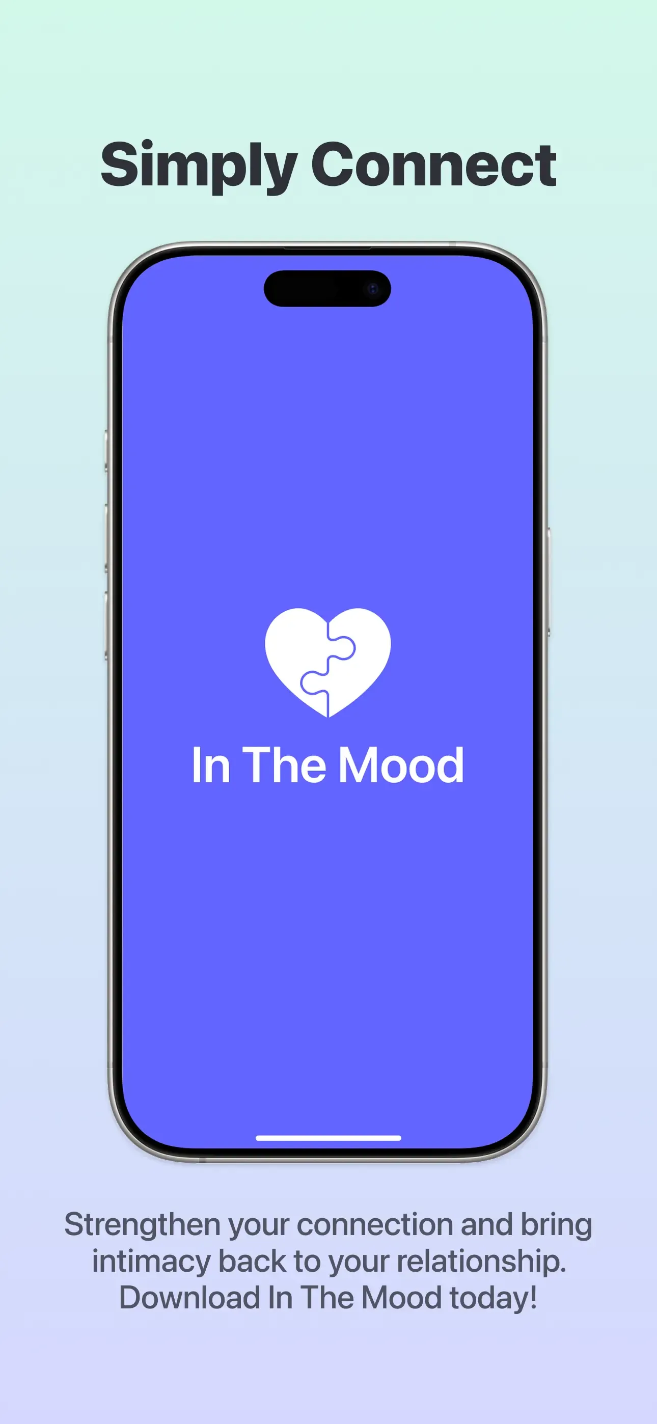 In The Mood is the private app for couples who want to improve their relationship through better timing, clearer signals, and deeper understanding. Whether you're navigating different moods or just too busy to connect, In The Mood helps you stay emotionally close — without pressure or awkward conversations.